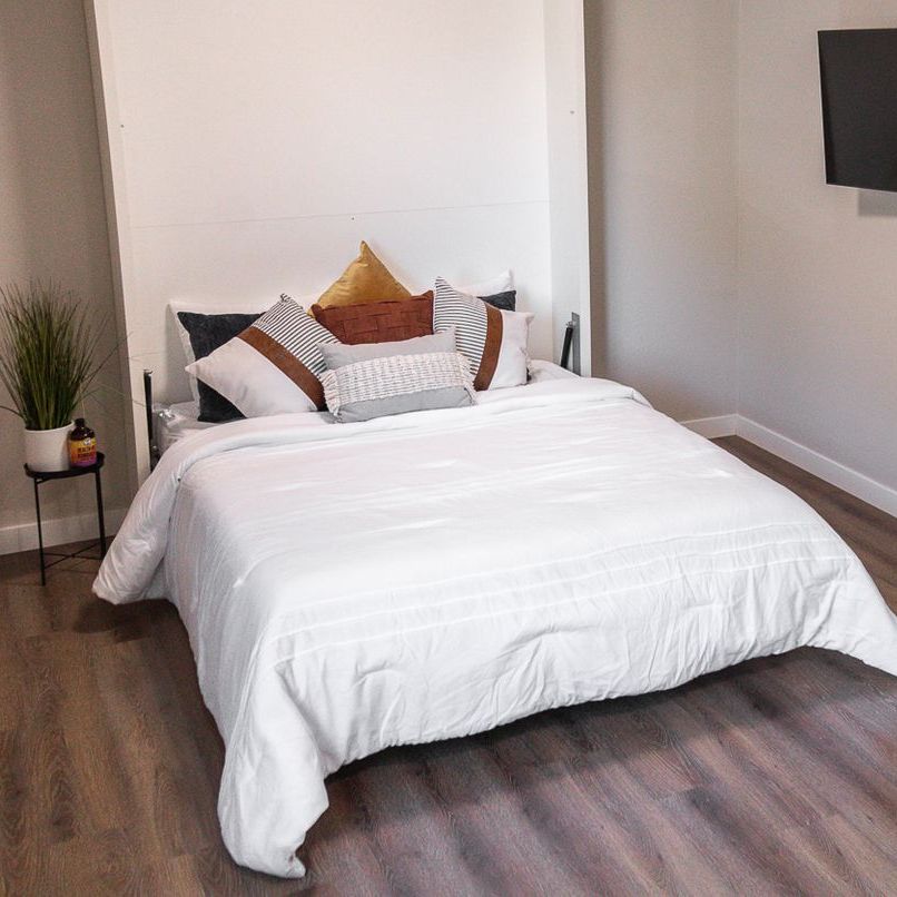 Our studios are thoughtfully designed to maximize natural light and feature high ceilings. The open-concept layout blends the living and sleeping areas, with a full-sized kitchen, so you can entertain without compromise.